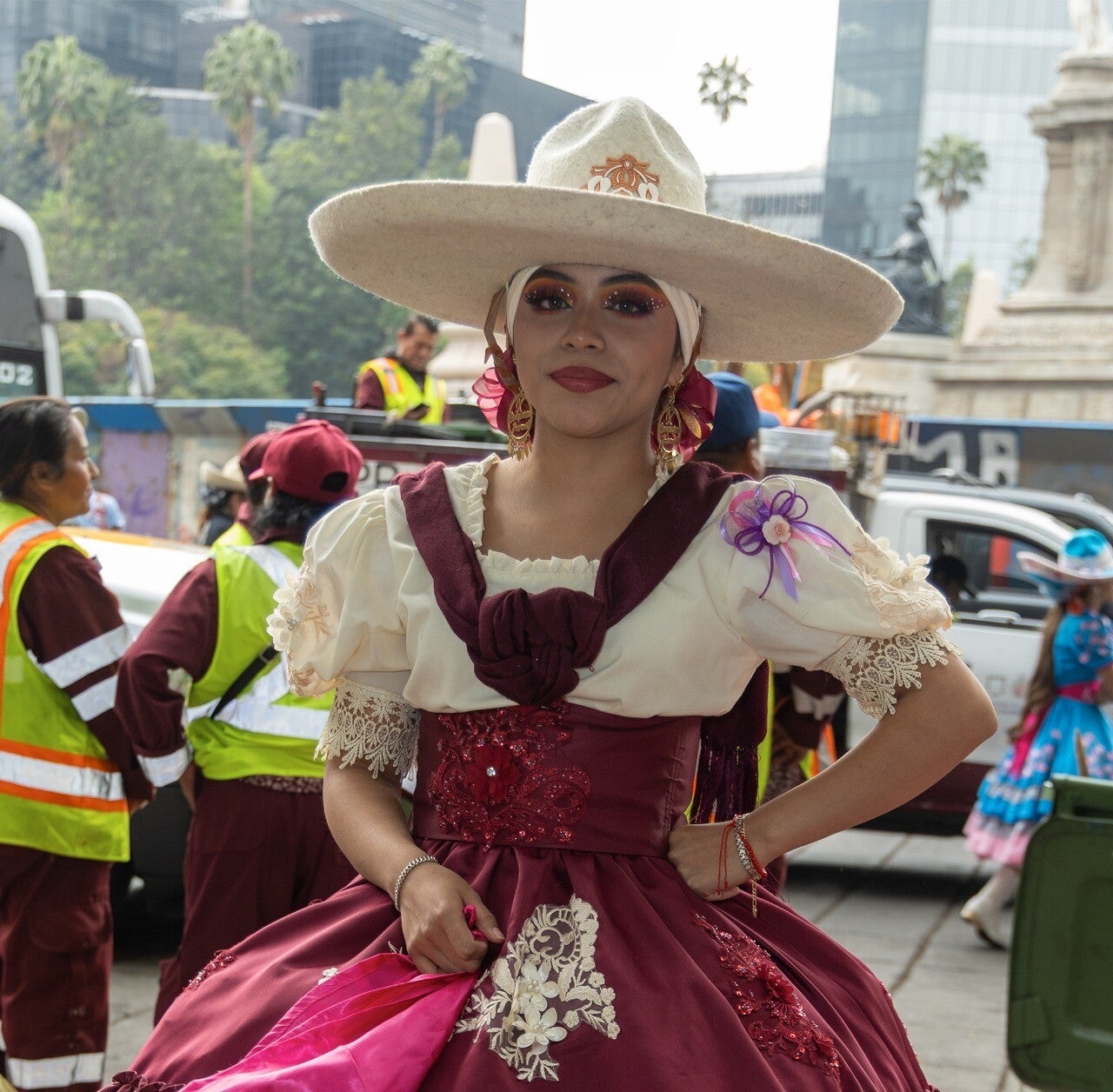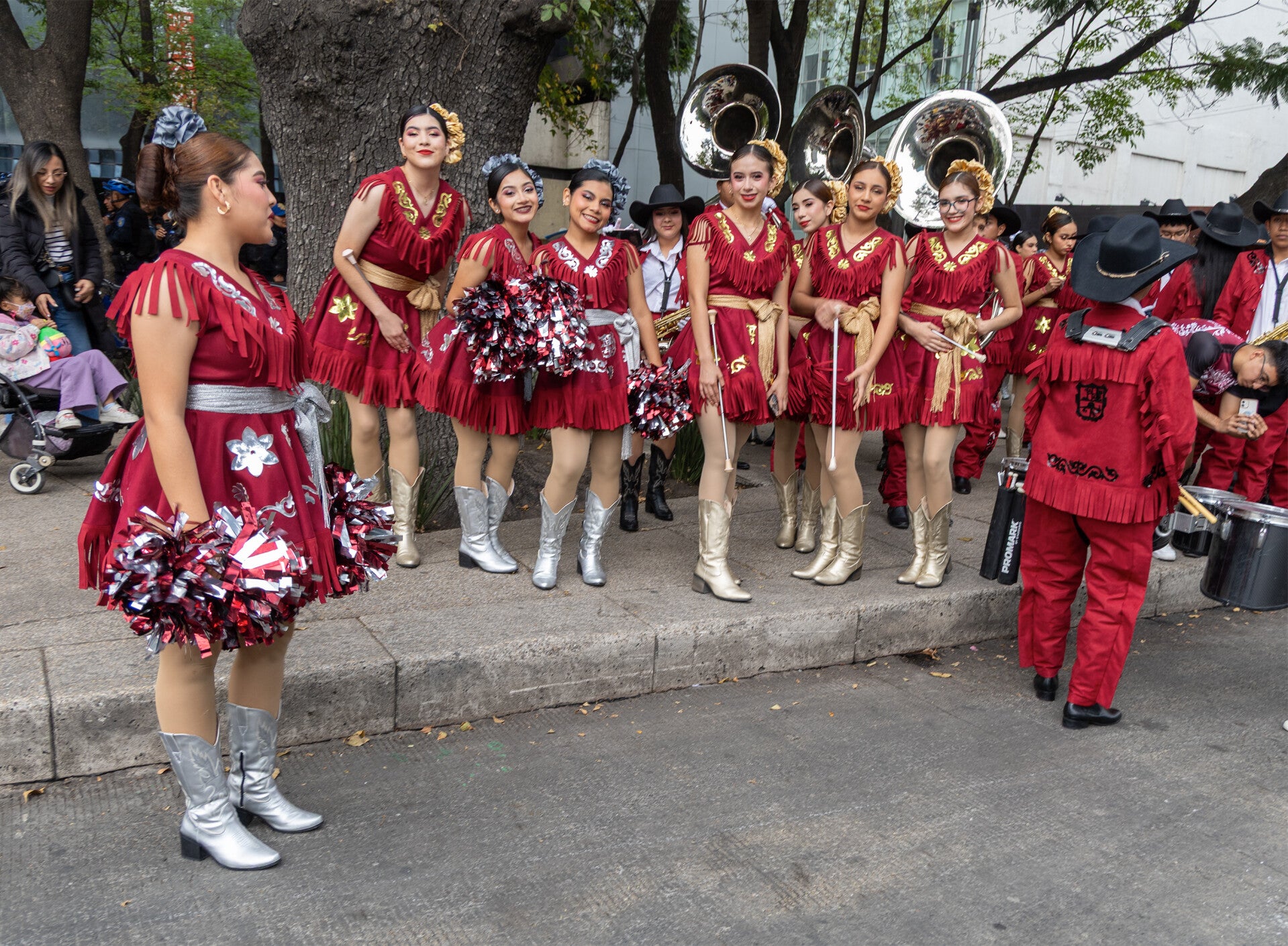 Reforma, habitualmente un eje vial, se convirtió en un corredor ceremonial. Las bandas marcaron un compás constante que resonaba contra las fachadas, y las comparsas se integraron en un mismo eje narrativo: tradición, cuerpo y protesta conviviendo sin jerarquías.
