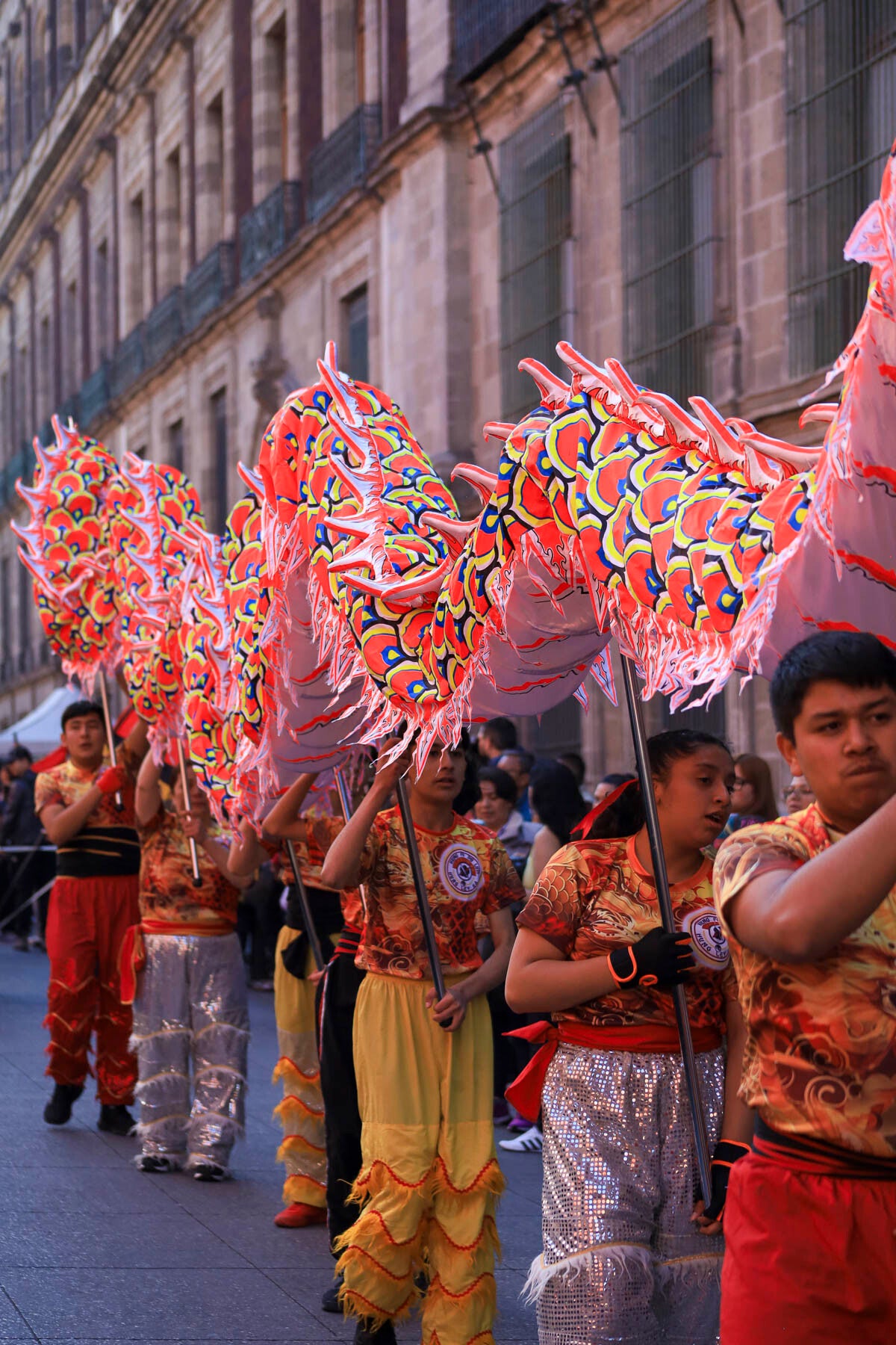 El pasado sábado 07 de febrero la calle de moneda en el centro histórico de la Ciudad de México se vistió de colores, siendo el rojo el más vistoso, al tiempo que aparecían Dragones y leones de grandes ojos, pieles vistosas, y el personaje principal, el caballo.