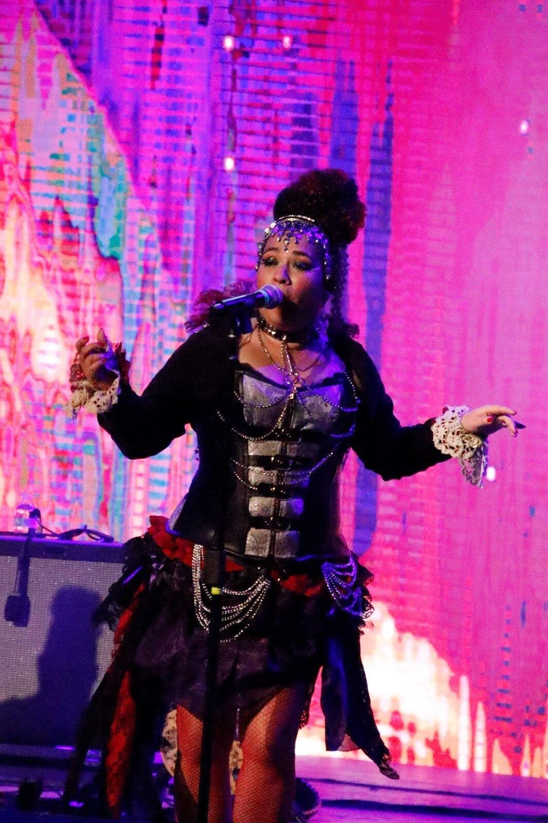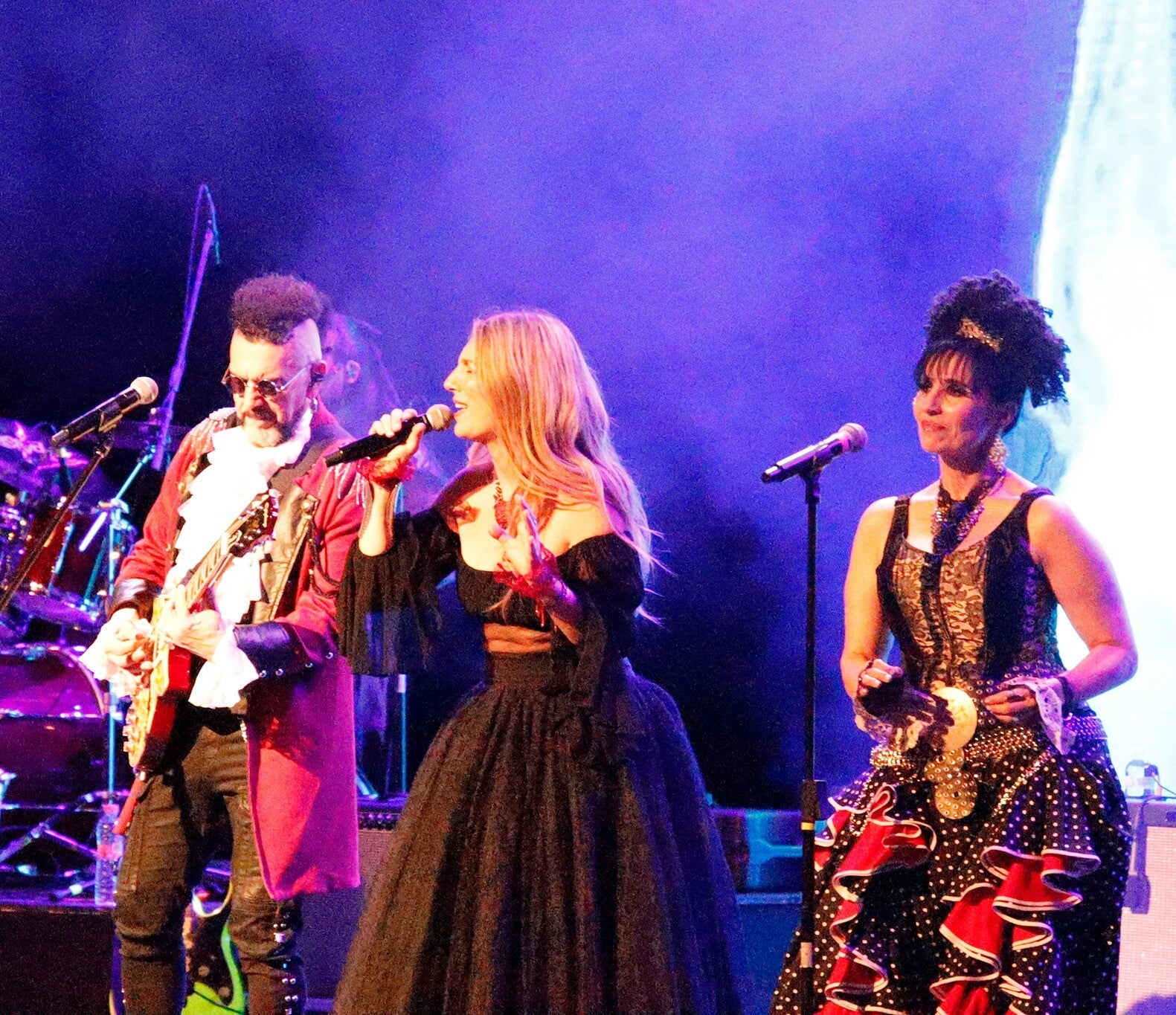 La escena era visualmente magnética: contraluces delineando siluetas, haces de luz atravesando el humo escénico, gestos suspendidos entre sombras y destellos dorados. El sonido no solo se escuchaba; golpeaba el pecho, vibraba en el diafragma y recorría la piel como una descarga eléctrica. Las risas y los aplausos se mezclaban con coros espontáneos que crecían bajo la cúpula del histórico recinto.