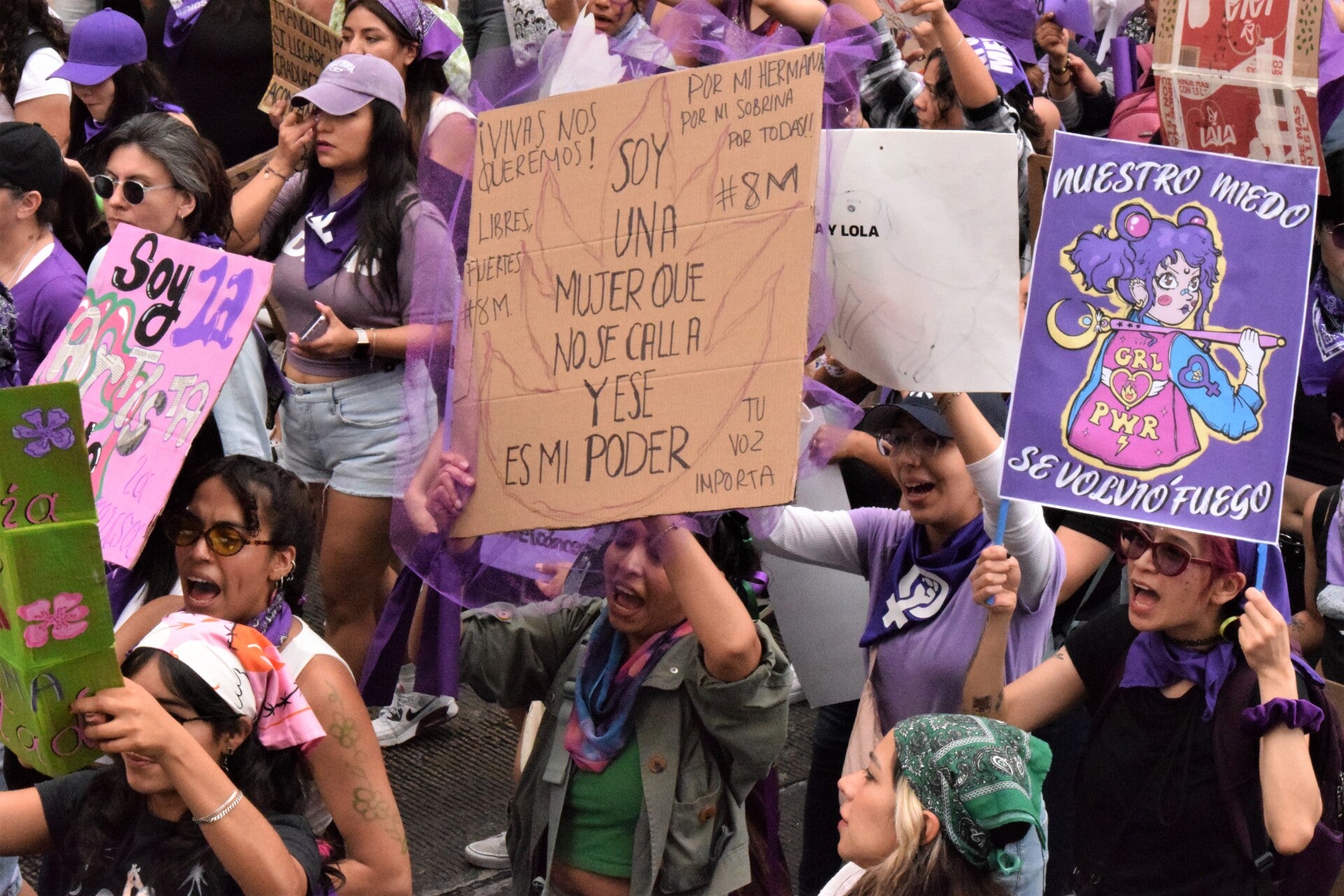 La lucha por la igualdad continúa, alzar la voz entre consignas como: “¡Ni una más!”; “¡No llegamos todas!”; “¡La policía no me cuida, me cuidan mis amigas!”; “Hoy marcho por ti”; se vuelven parte de las acciones reales para visibilizar la violencia que enfrentan las mujeres en nuestro país y cada 8M, resuenan entre mareas lilas y verdes.
