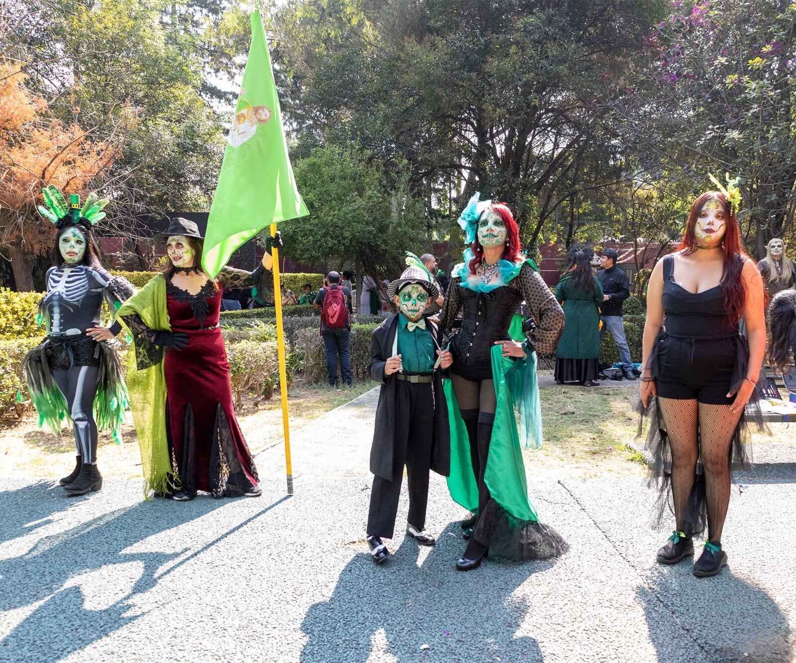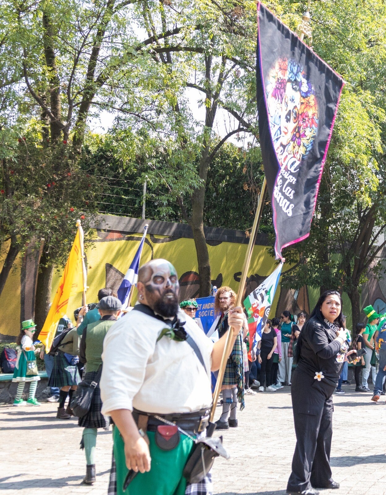 Entre los grupos participantes también estuvo presente la Megaprocesión de las Catrinas, encabezada por Jessica Esquivias, cuya participación se integró al mosaico cultural del evento. Los maquillajes minuciosos, el brillo sutil en los pómulos y el movimiento elegante de los vestuarios capturaron la atención del público, creando un contraste visual donde la estética mexicana dialogó con la música celta.